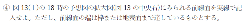 これらを考慮して前線解析を行えば解答のような答えになります。