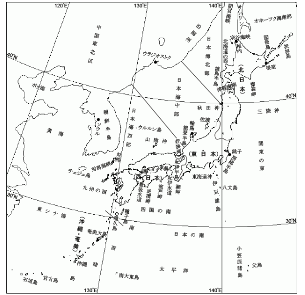 気象予報士試験でよく出題される地名に日本近海と日本の地名があります。