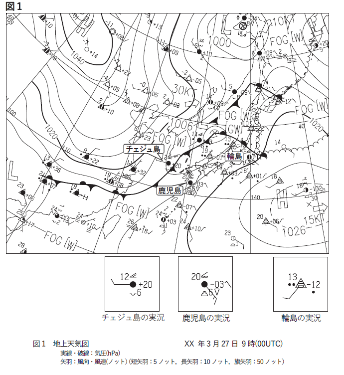 問1(1) 地上天気図