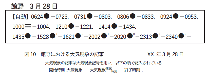 10時前に降水はやみ、10時00分から4分間は⑧もやが観測されています。