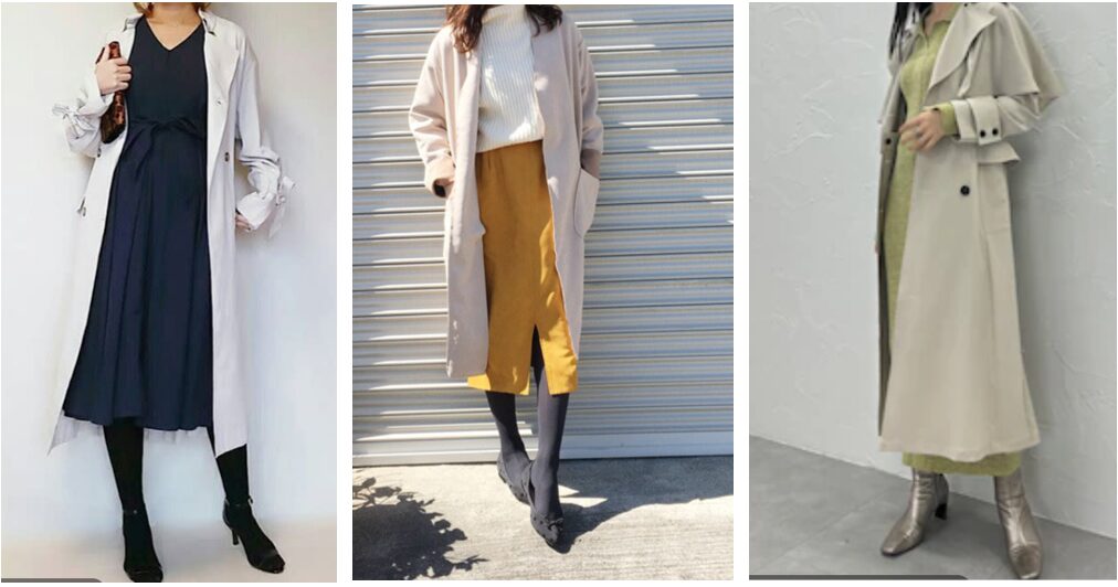| 🌬 風の強い日(体感10℃前後) | ・チェスターコート+ニットワンピ+タイツ ・ウールコート+マフラー+ブーツ | 首元と足元を温めて“風通しゼロ”コーデに。 |