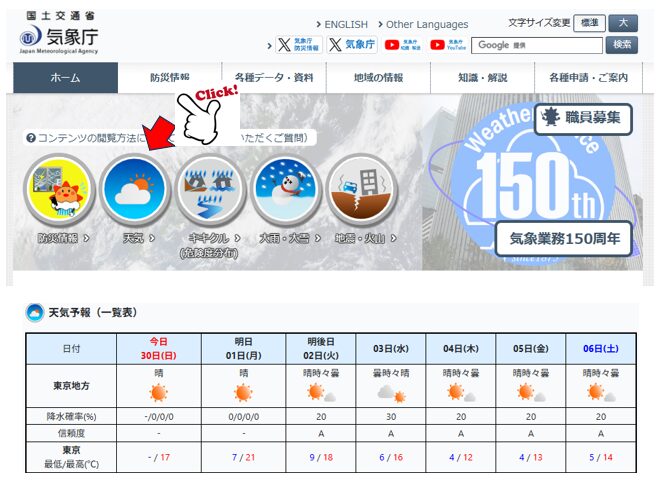 気象庁のHPは、天気予報だけでなく、警報・注意報、台風情報、雨雲レーダー、天気図、さらには専門向けのモデル図まで、あらゆる気象情報を無料で確認できる非常に強力なサイトです。