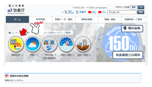 まず、PCで見たときの気象庁HPのトップ画面はこちら。