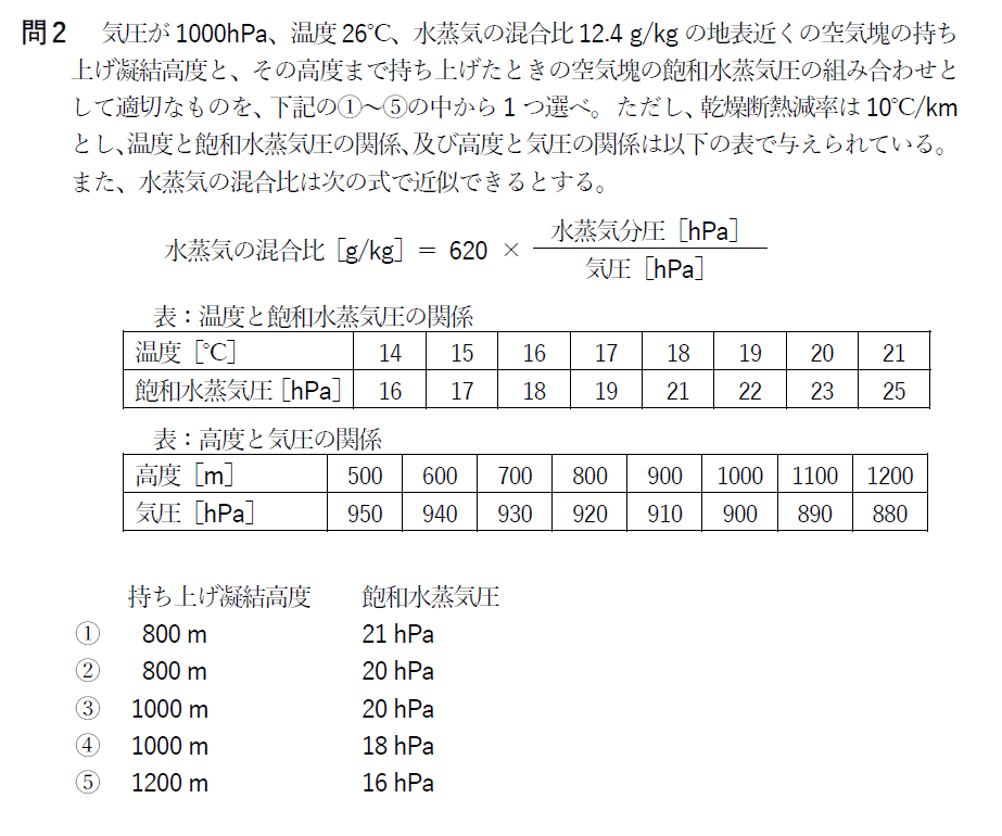 問2 持ち上げ凝結高度