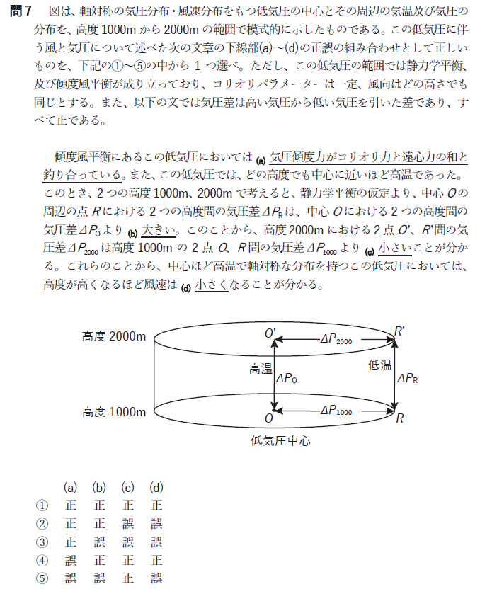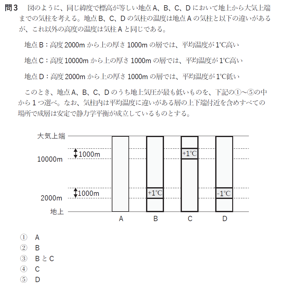 そのため気圧の減少が大きいのはBとなりそうですが、気象業務支援センターから問題として適切ではなかった旨発表がありました。