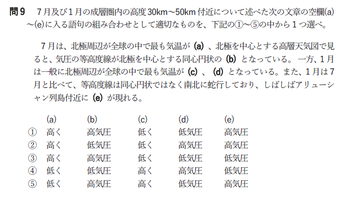 問9 成層圏内の特徴