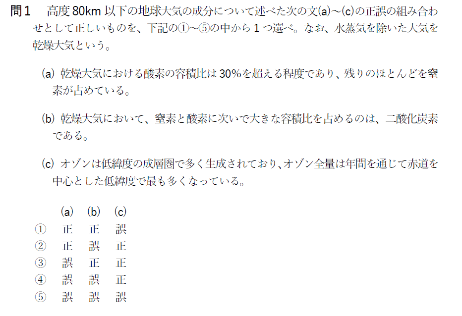 問1 地球大気の成分