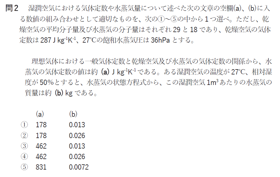 問題文では乾燥空気の気体定数が287Jkg-1K-1として与えられています。