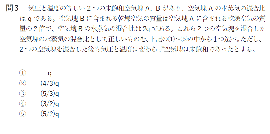今、未飽和の空気A、Bがあり混合比はそれぞれq、2qですよね。