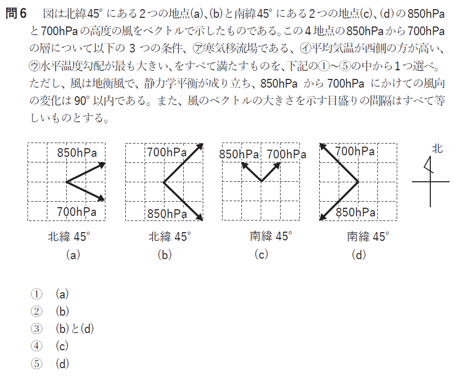 今回の問題では北半球と南半球の温度風を理解できているかという問題です。