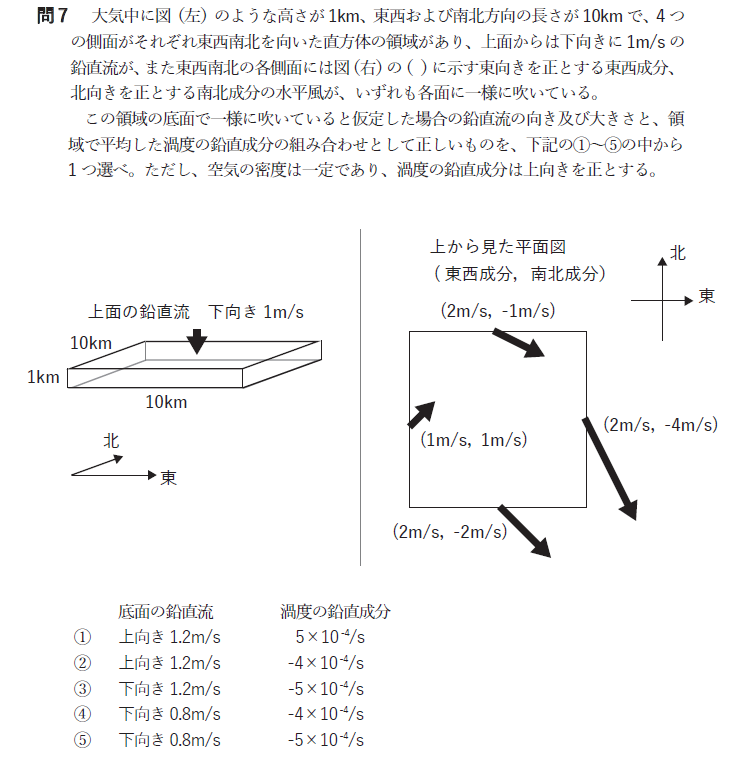渦度の鉛直成分=(-1)+(-2)+(-4)+2=-5×10-4/sですね。