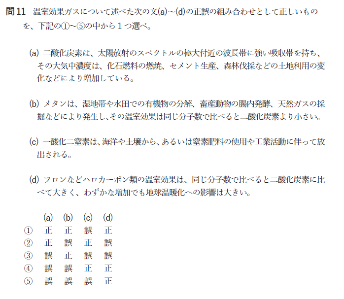 問題文の通りです。二酸化炭素を1とした場合、フロンの温室効果ガスは同じ分子量で数千から1万倍以上あり、メタンよりもはるかに大きい温室効果をもちます。