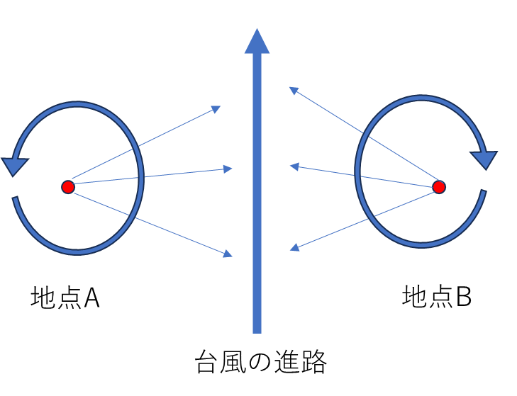 台風が東か西どのように通過したか判断するためには、風向がポイントになります。