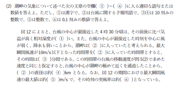問6(2) 潮岬の気象