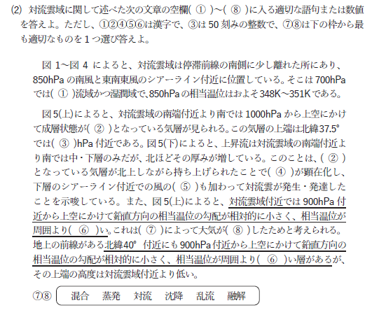 問2(2) 対流雲域