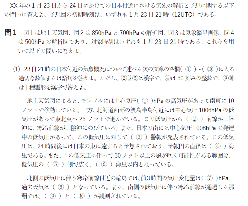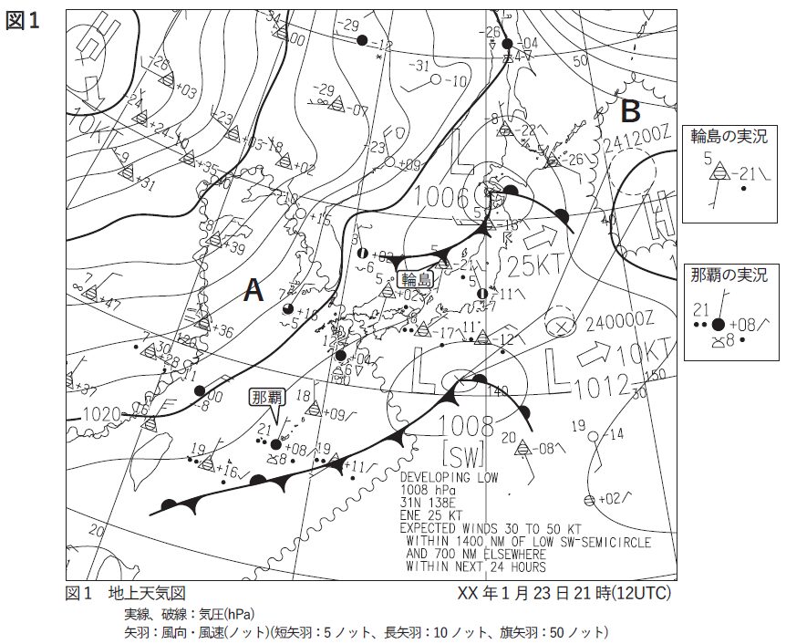 問1(1) 地上天気図