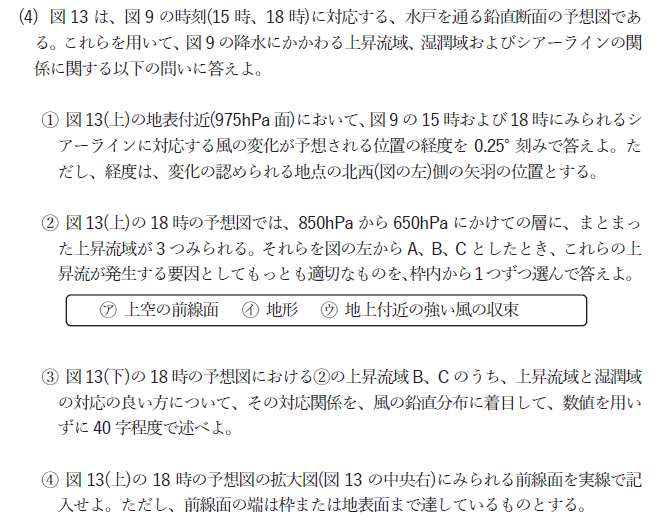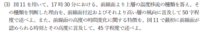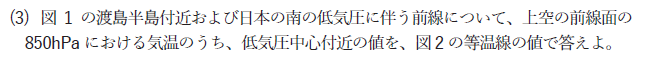 問1(3) 低気圧に伴う前線