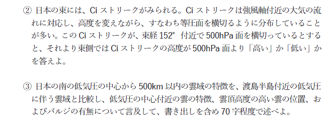 これらをまとめると「Bのほうが湿潤域との対応が良く、南西風が上空に向かって強まる領域に対応している。」となります。