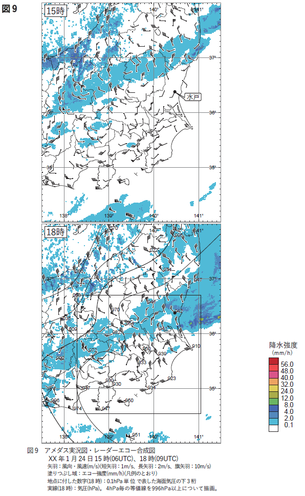 9時および21時の天気図から水戸付近にある可能性が高いことが予想できますよね。