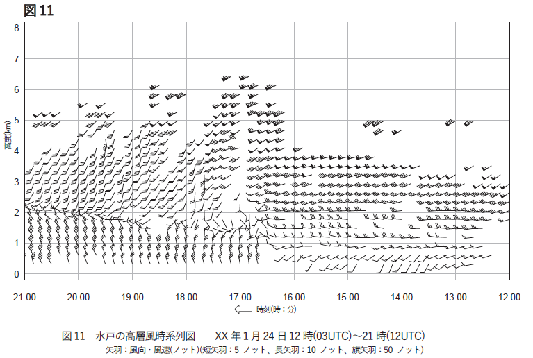 17時30分におけるこの高度では北東の風。