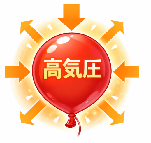 これは風船の中の空気が密集し高気圧になっている状態です。