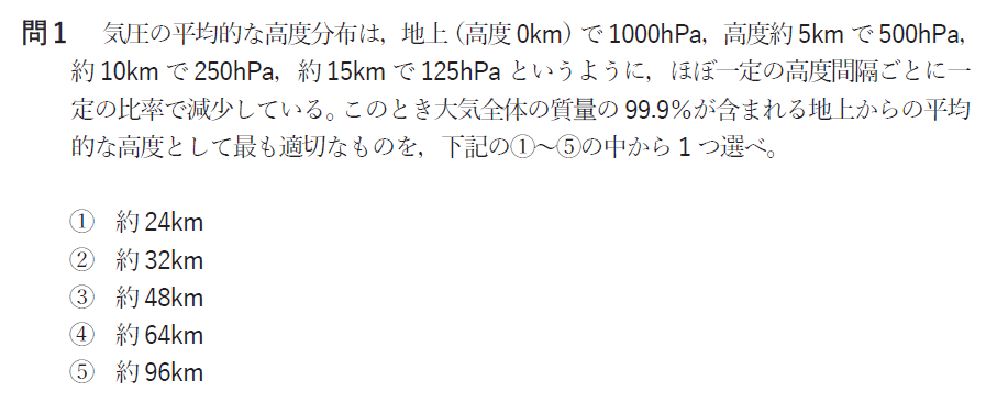 問1 気圧の高度分布