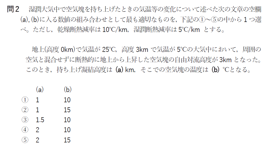問2 持ち上げ凝結高度