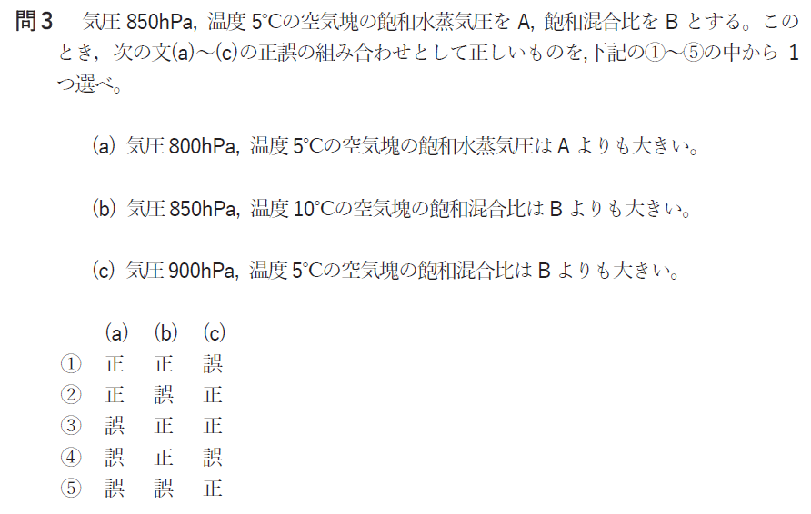 問3 飽和水蒸気圧と飽和混合比