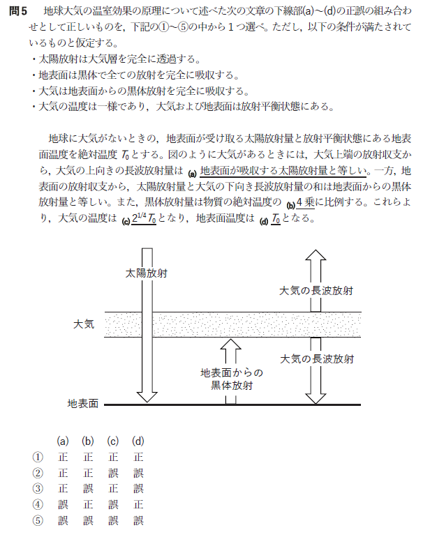 問5 温室効果の原理