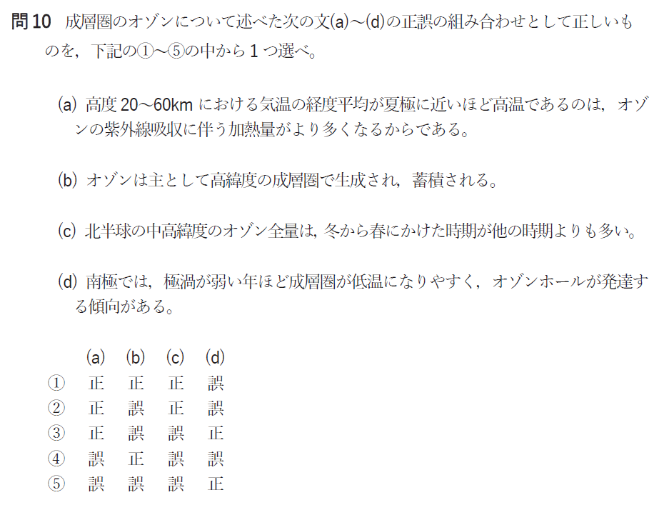 問10 成層圏のオゾン